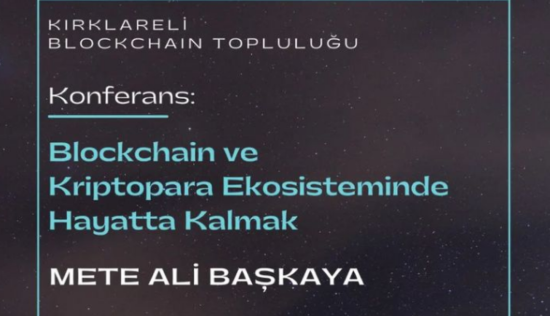 Kırklareli Blockchain Topluluğu (KLUBLOCKCHAİN) organizatörlüğünde gerçekleşecek etkinliğin teması “Blockchain ve Kripto Para Ekosisteminde Hayatta Kalmak” olarak verilmiştir. KLUBLOCKCHAİN, etkinliğin konuğu olan Mete Ali Başkaya ile etkinliğin anlatımını sürdürecektir.