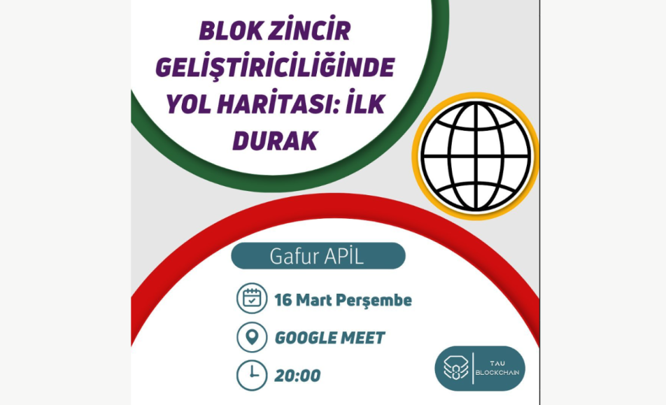 Türk Alman Üniversitesi Blockchain Topluluğu organizatörlüğünde gerçekleşecek olan etkinlik ile karşınızdayız. Blok zincir geliştiriciliğinin ilk durağı olan “Yazılıma Giriş” etkinliğine davetlisininiz. Etkinliğin konuğu olarak Gafur Apil bizlerle olacaktır. Keyifli eğitimler.